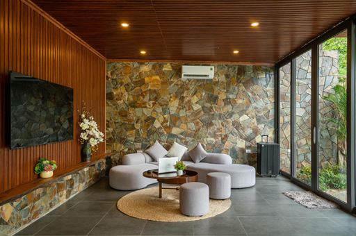 Sử dụng đá rối đa sắc Lai Châu ốp tường mang đến vẻ đẹp sang trọng, gần gũi với thiên nhiên mà không vật liệu nhân tạo nào có được.