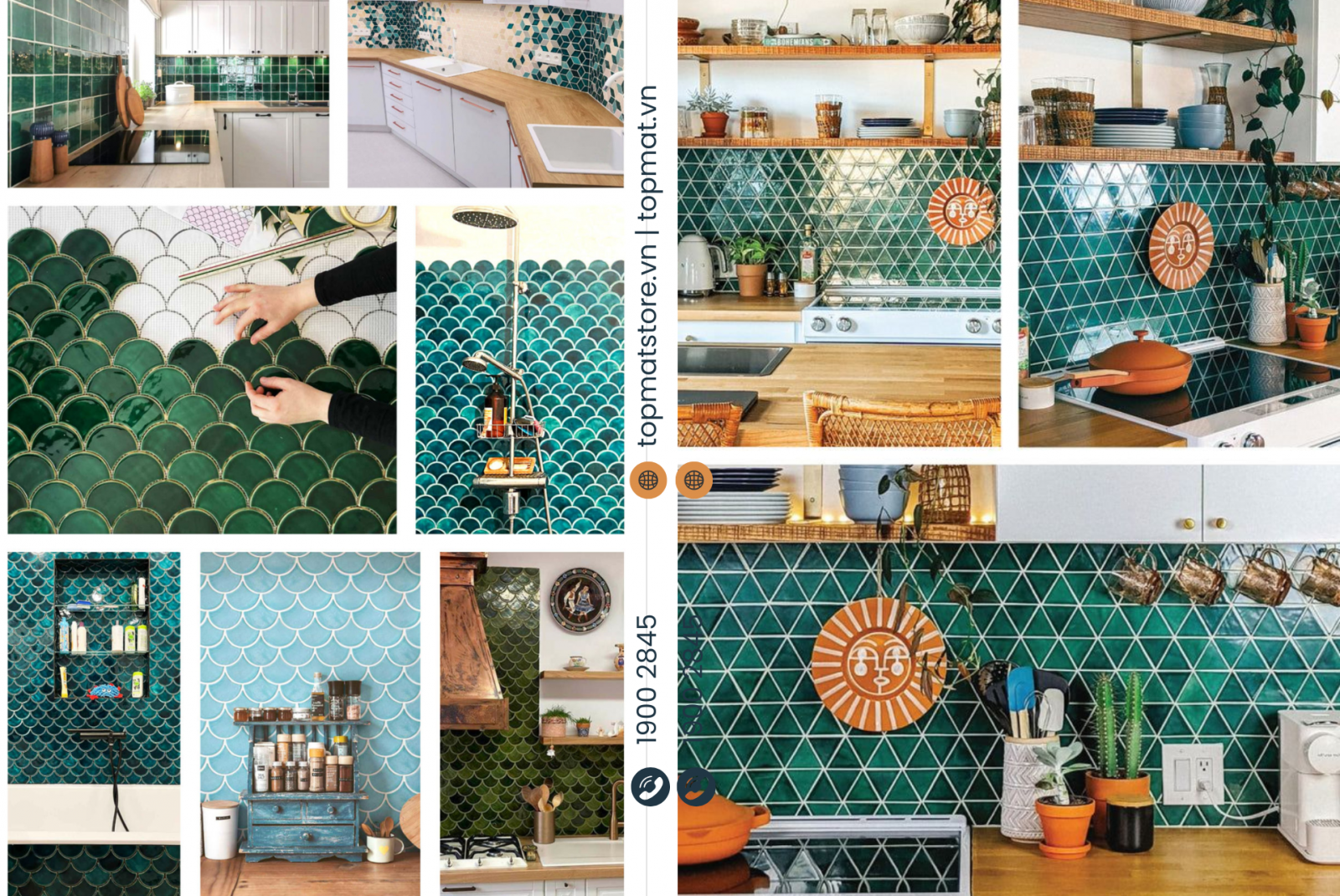 | Trang trí tường nghệ thuật | Gạch mosaic vảy cá, pha đá | 350.000 – 450.000đ/m² | ![]() |